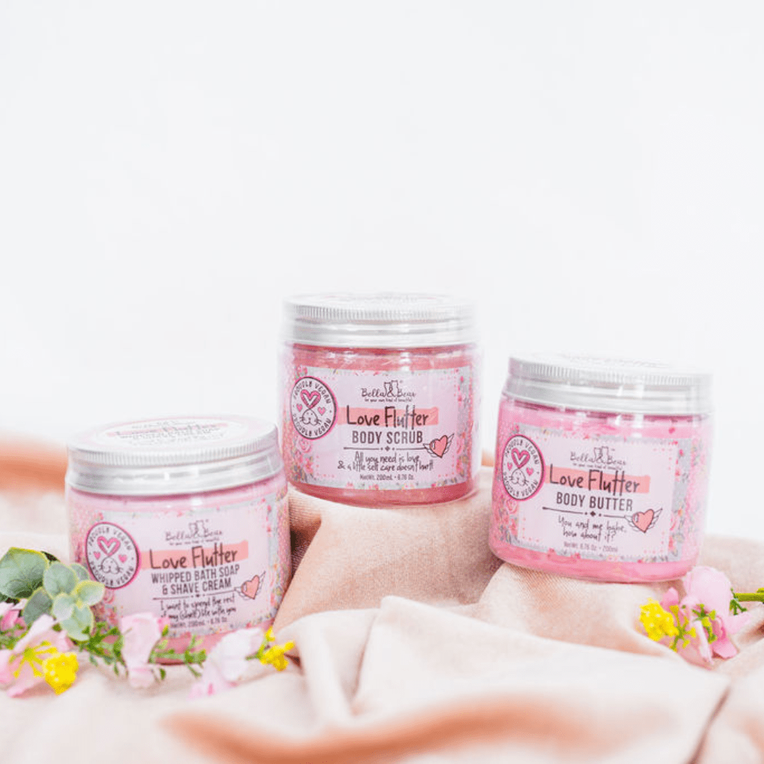 Bella & Bear Love Flutter Gift Set | Body Scrub | Bath Soap | Body Butter - Valentines Gift Set
