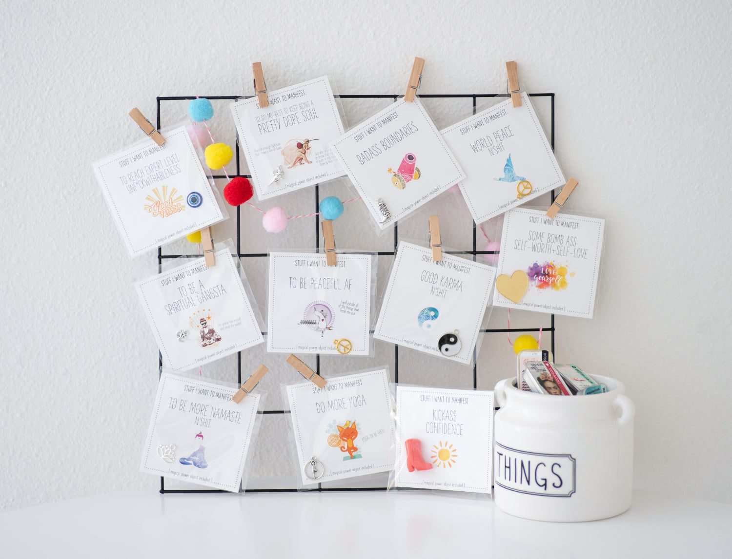 Each 3 x 3 package comes with a manifesting card and instructions on how to manifest, plus a super attractor Magical Power Object to carry with you or pin to your vision board to make it come true. You can keep it all together in the bag or carry the Magical Power Object in your purse or pocket separately!